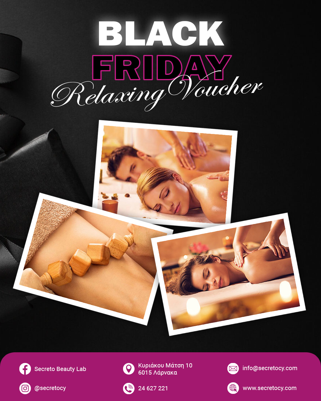 Οι πιο αγαπημένες σας χαλαρωτικές θεραπείες, τώρα σε μοναδικές Black Friday προσφορές — ιδανικές για δώρα ή για μια προσωπική εμπειρία χαλάρωσης.